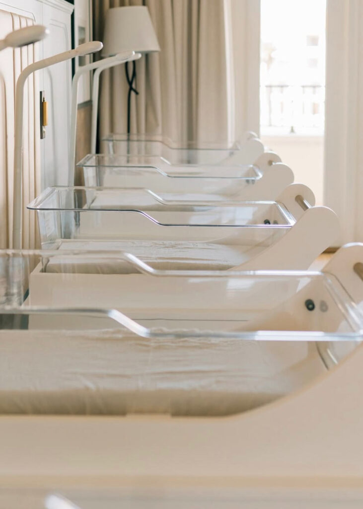 At Convergint–Innovative Medical, we design postpartum retreat furniture that blends safety, elegance, and function. Every piece is built to serve the unique needs of postpartum retreats, helping staff deliver attentive care while maintaining a serene environment. Our antimicrobial bassinets in particular are trusted by retreat founders for their secure, health-focused design, easy-to-clean materials, and quiet mobility.