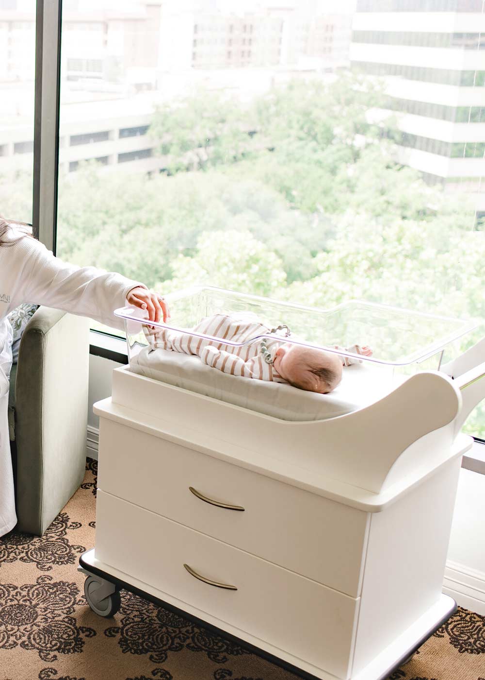 • Smooth-glide soft-close drawer slides for discreet & organized storage of diapers, blankets, and feeding supplies