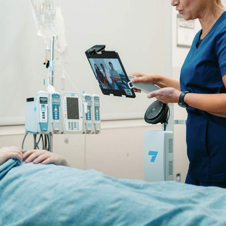 - Options starting from a simple roll stand to a fully articulating mobile cart for overbed engagement