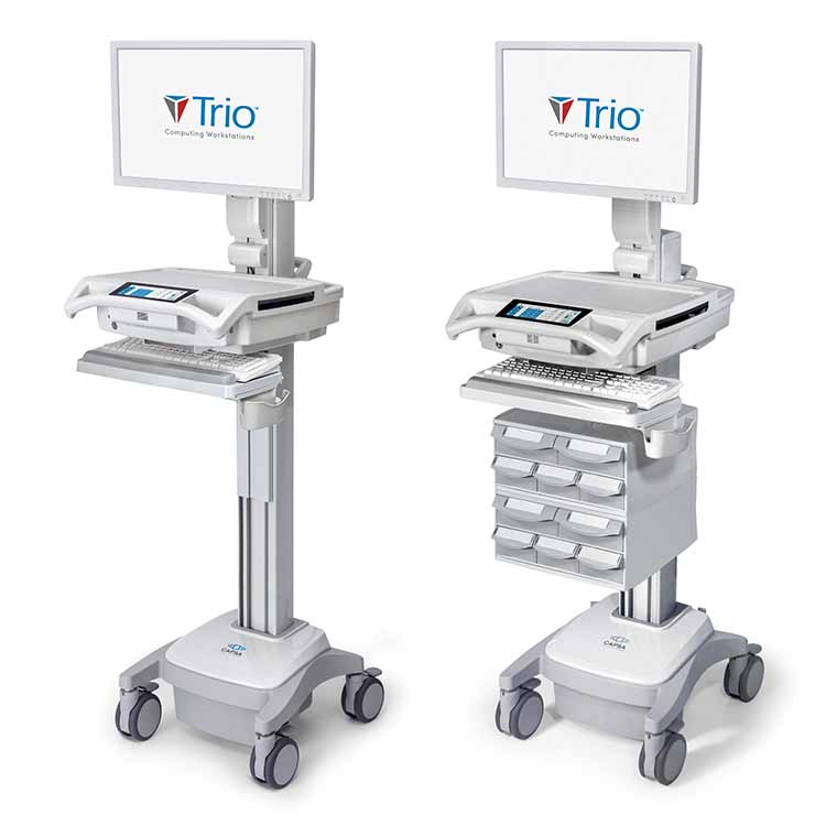 and accessories that adapt to your needs. Trio is personally adjustable for optimal user comfort including height adjustments and ”memory” presets that are stored in your user profile and transferred to any cart you log into.Capsa Trio Cart Features: